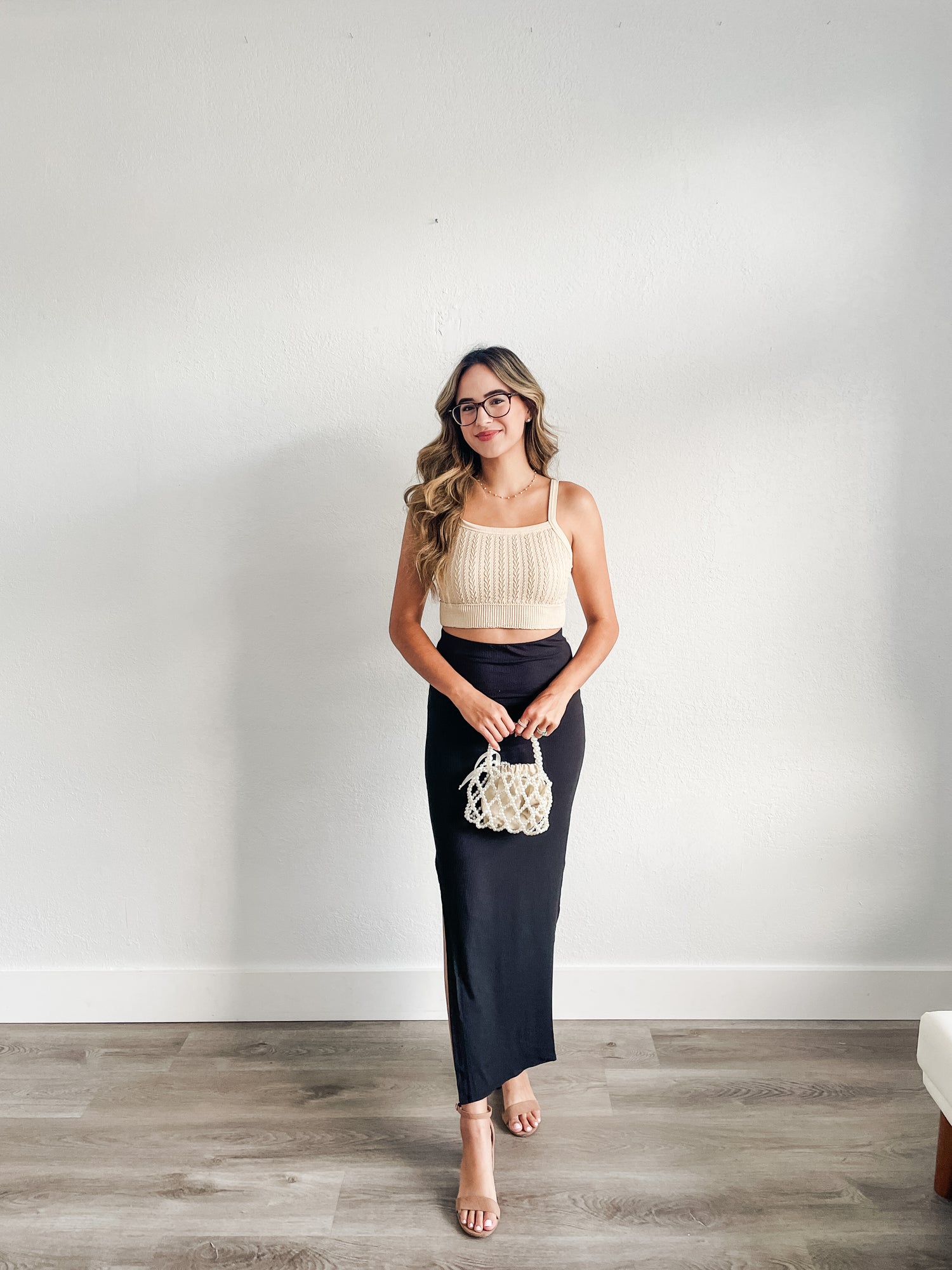 Top features Seamless cable knit bralette with a square neckline, extremely stretchy fabric composition and one size fits most sizing.