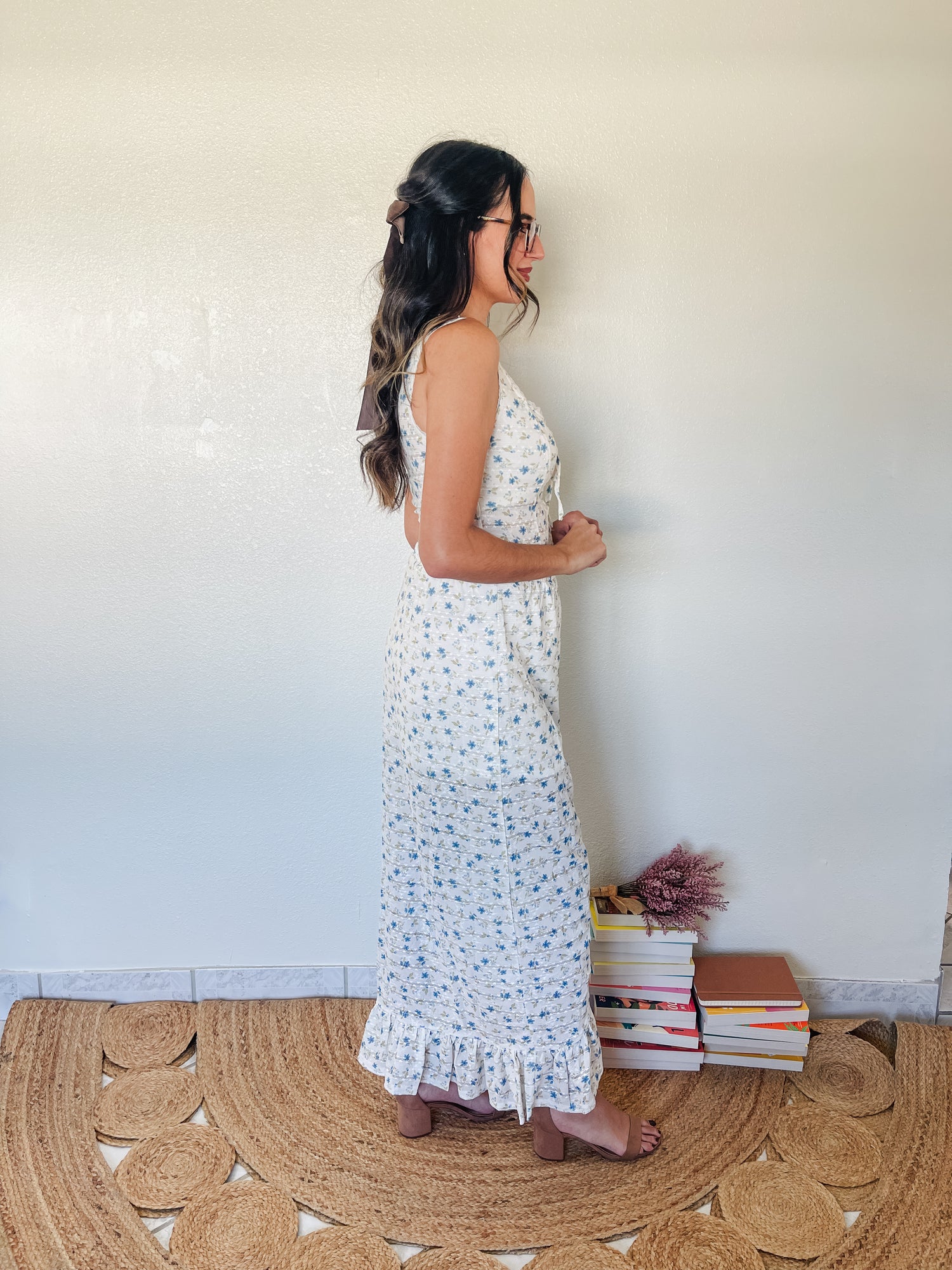 Skirt features a cascade ruffle slit, midi length, elasticized waistband and floral print. Matching top is " Sweet Sweet Kisses Top"