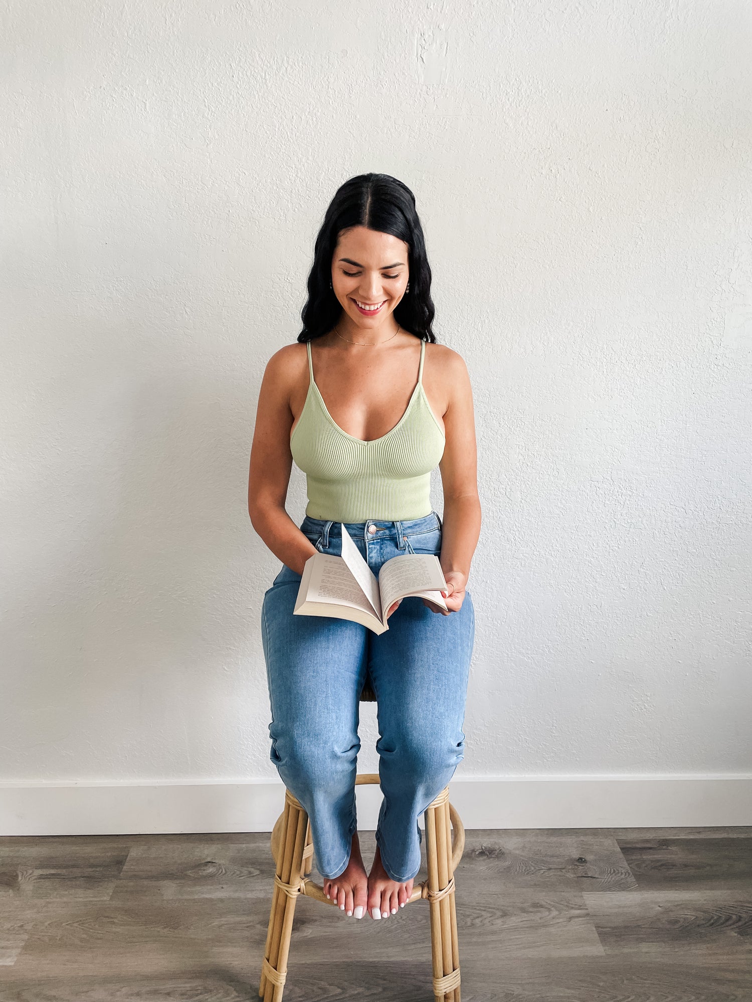 Top features ribbed fabric, v-neckline, extremely stretchy fabric composition and one size fits most sizing.