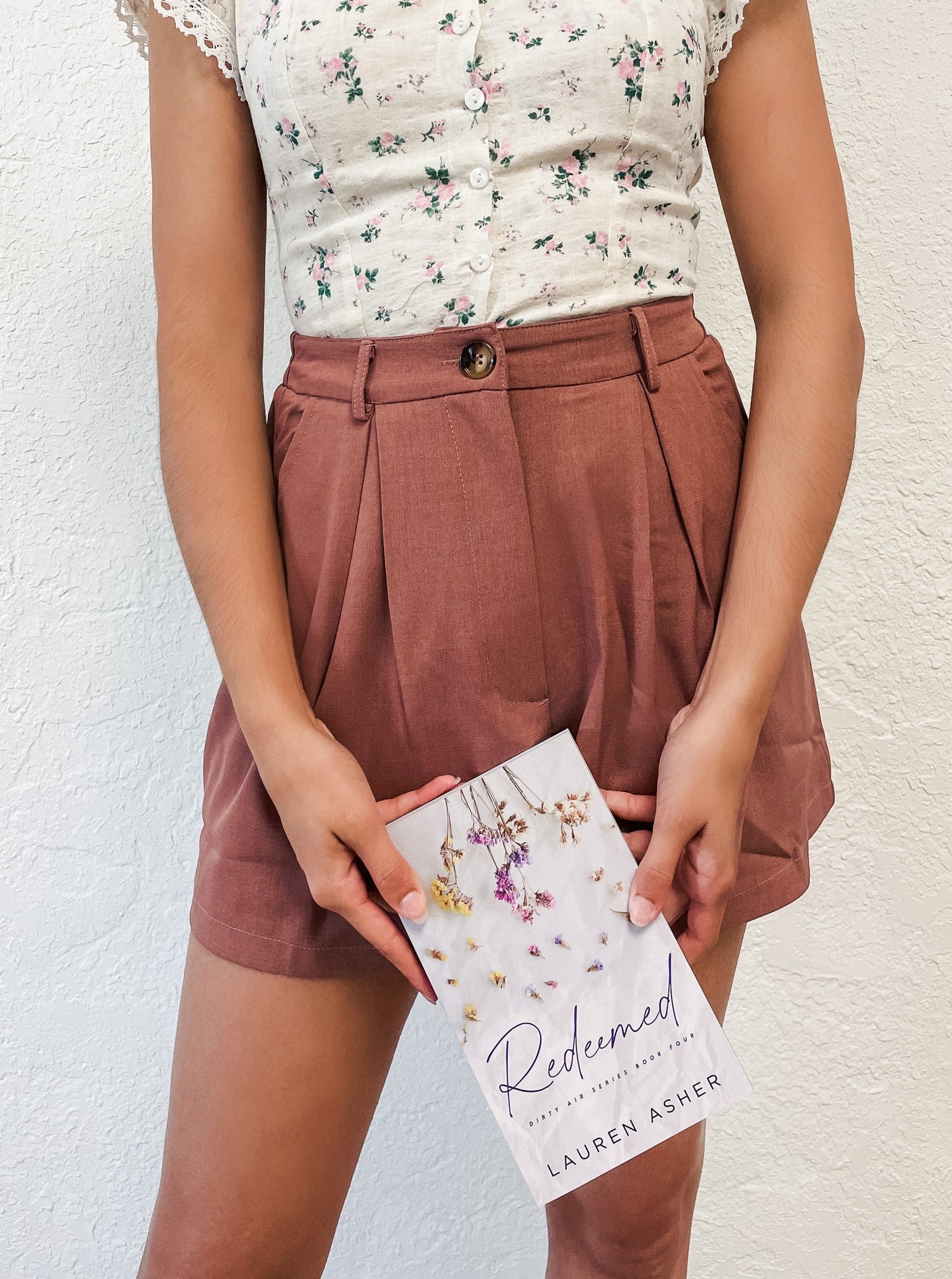 Shorts feature woven bottom with button and zipper closure, pleat detail on the front, elastic band on center back with belt loop and side pockets.