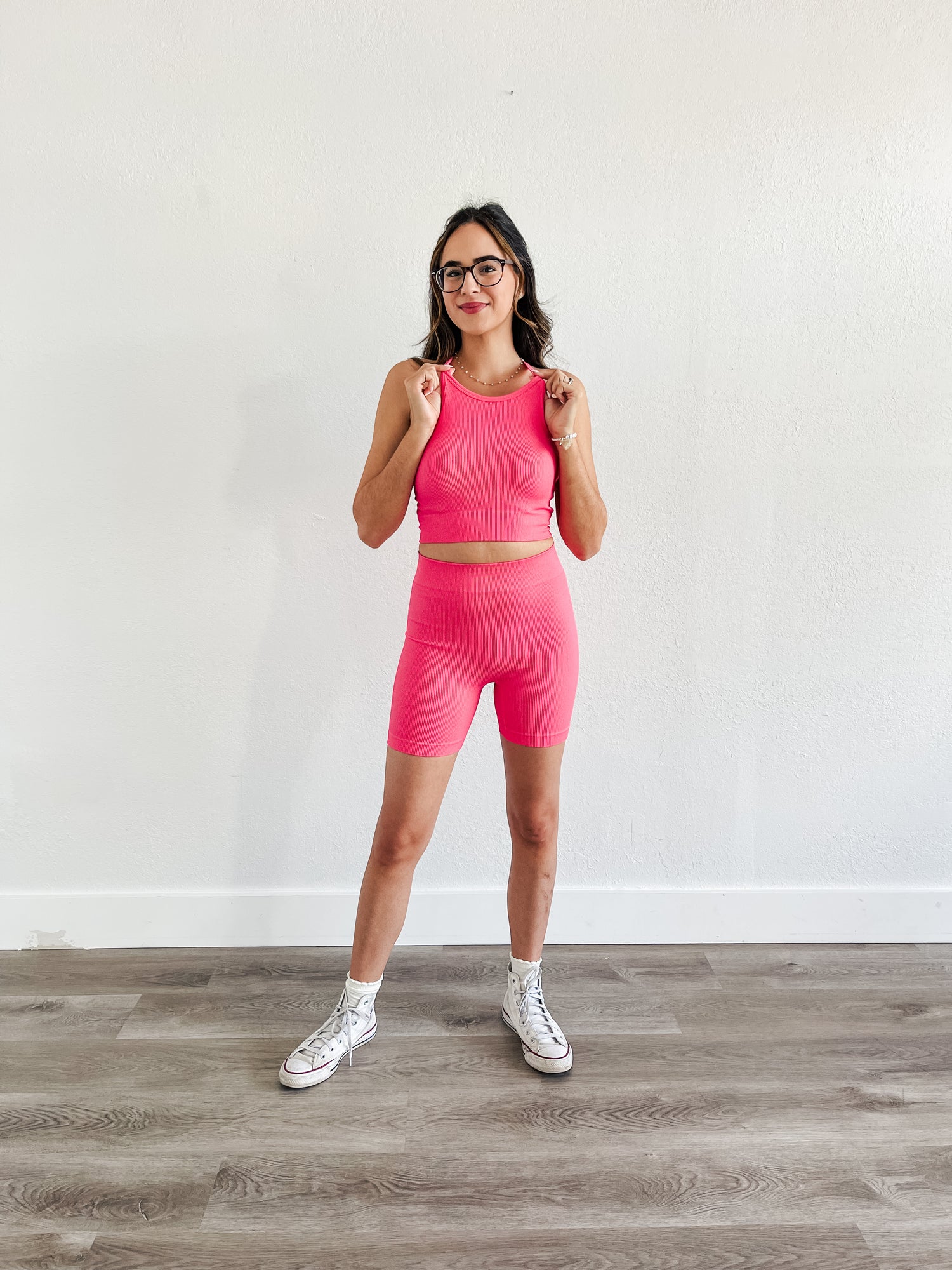 Set features supportive and compressive fit and a bold strappy back, high waisted leggings with side pockets
